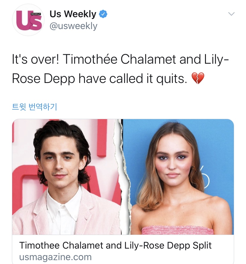 티모시 샬라메 릴리 로즈 뎁 결별 본문