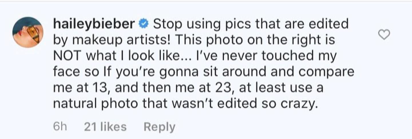 헤일리 비버, 성형설에 대해 직접 밝히다. 본문