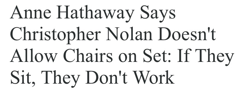 앤 해서웨이, '크리스토퍼 놀란이 촬영장에서 의자에 못 앉게 했다.' 발언 화제 본문