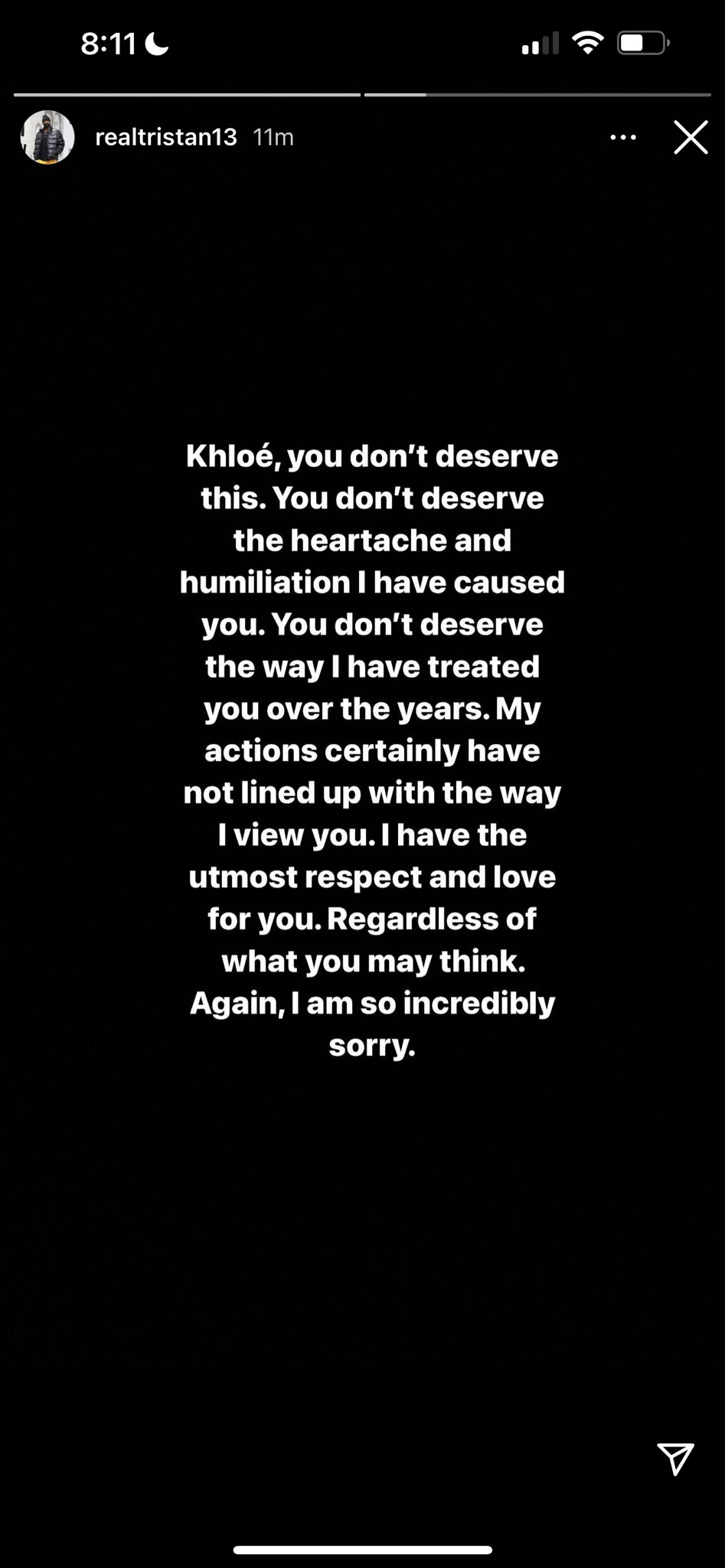 트리스탄 톰슨, 바람 펴 낳은 셋째아이 친부 확인 후 클로이 카다시안에게 공개사과 본문